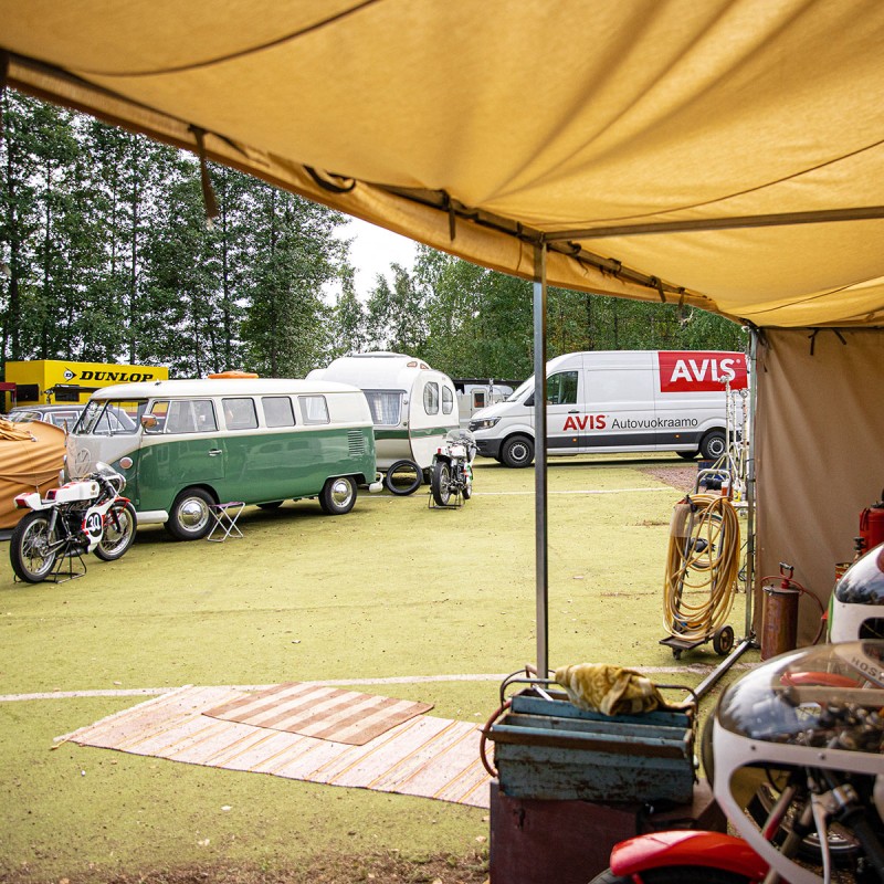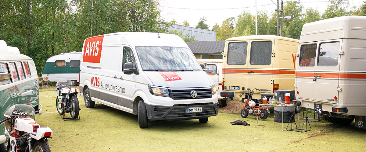 Paikalle saapuessa tekisi mieli hieraista silmiään: kuljinko äsken aikaikkunasta? 70-luvun värikkäät teltat, minihameet ja vanhat autot tervehtivät tulijaa. Tutummilta – ja tuoreemmilta – tuntuvat Avis-logolliset valkoiset pakettiautot kalustoparkissa.