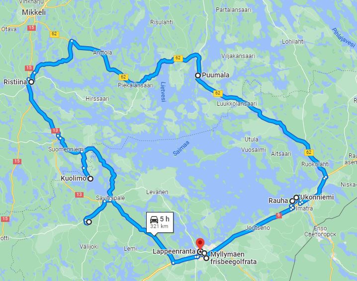 Reittimme alkaa Lappeenrannasta, josta voit vuokrata auton käyttöösi toimipisteestämme. Suuntaa ensin parin kilometrin päähän kuutostien yli kohti Myllymäen frisbeegolfrataa. Metsikköinen rata on saanut kiitosta lajin harrastajilta ja puukujien välissä on jännittävää tähtäillä kohti koreja. https://frisbeegolfradat.fi/rata/myllymaen_frisbeegolfrata_lappeenranta/